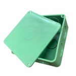 Junction Box, Reinforced PVC, 3″×3″x1″, With Lid, Plastic, Green