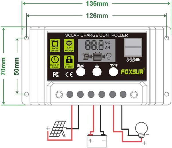 The LCD screen has a clear display of battery power and voltage and other data. It can easily switch modes and parameter configurations, with better display effect, clearer, more beautiful, more modern and more energy-saving. Suitable for solar power generation systems, solar street lights, motor homes, camping, smart home, solar light boxes, smart irrigation, camping lights, etc.