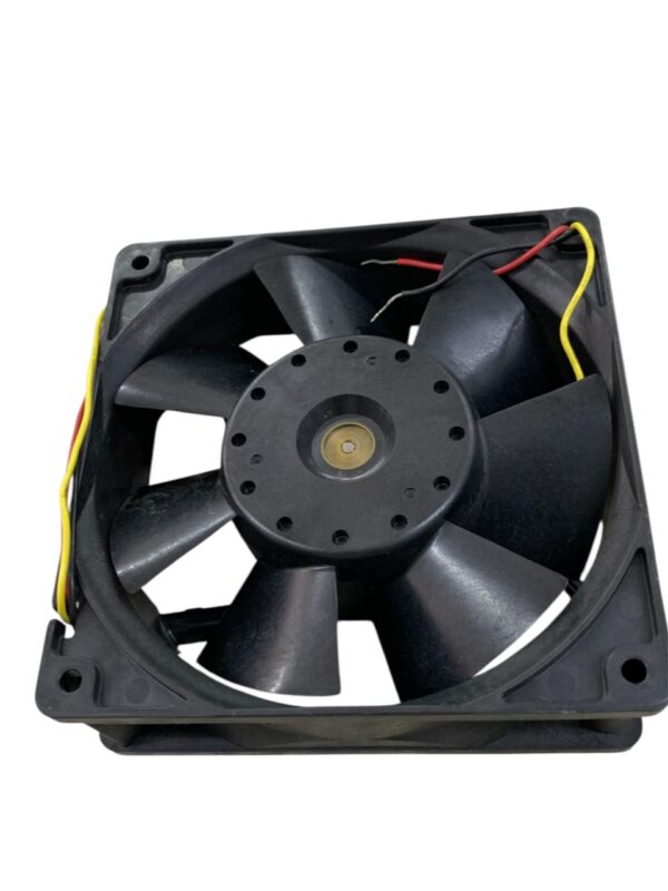 With a 120 mm × 120 mm × 38 mm (approximately 4.5″) frame, the fan is commonly used in industrial electronics, telecom systems, servers, power supplies, and control cabinets. The fan features a ball-bearing motor, providing long service life and stable operation even in continuous-duty environments.
