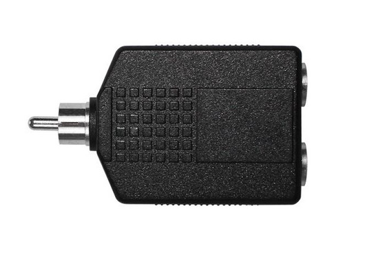 Connector, Adapter, Audio, one RCA Male to two 1/4″ Stereo Female