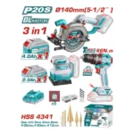 Tool Kit, Combo, 3-in-1, Drill + Angle Grinder + Blower + 2pc batteries + Charger, Total